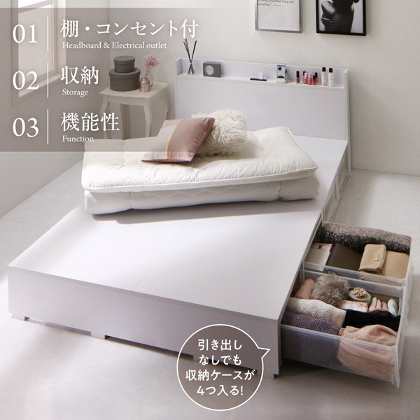 kag-53655 シングルベッド 一人暮らし フレーム チェスト ベッド下 収納 引き出し 大容量 宮 棚 携帯 コンセント スマホ 充電 布団可 フラット床板 箱型 ローベッド 低い