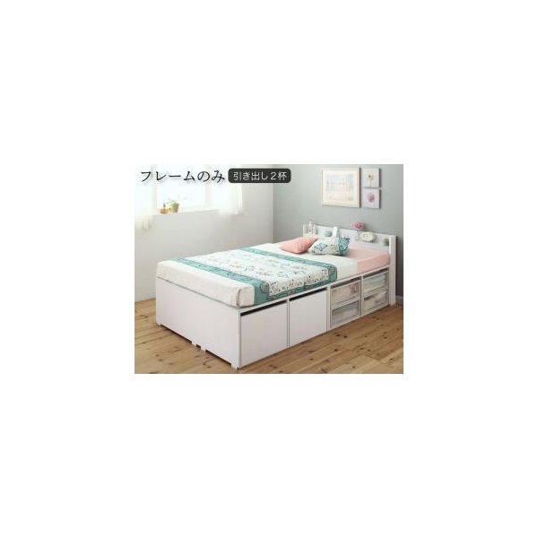 kag-53679 シングルベッド 一人暮らし フレーム チェストベッド ベッド下収納 引き出し 大容量 宮 棚 携帯 リモコン コンセント スマホ 充電 布団可 フラット床板 箱型 白