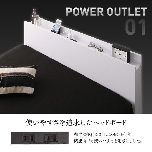 kag-53701 シングルベッド 一人暮らし マットレス付き ベッド下 収納 大容量 床下収納スペース ロー 低い 宮 棚 携帯 コンセント スマホ 充電 布団可 フラット床板 箱型