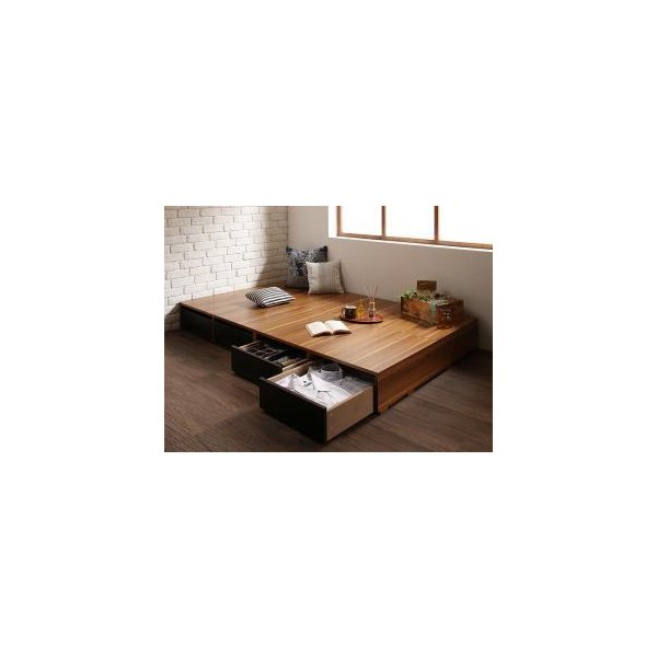 kag-53836 シングルベッド 一人暮らし フレーム チェスト ベッド下 収納 引き出し 大容量 ヘッドレス 布団可 フラット床板 箱型 ツートンカラー ローベッド 低い
