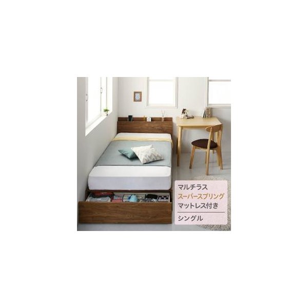 シングルベッド 一人暮らし マットレス付き チェストベッド ミドル ベッド下収納 引き出し付き 大容量 宮付き ヘッドボード 枕元 棚 ラック 携帯置き ティッシュ置き メガネ置き リモコン 頭上 収納 コンセント ゲーム ケーブル スマホ 充電 電気 北欧 おしゃれ モダン アンティーク
