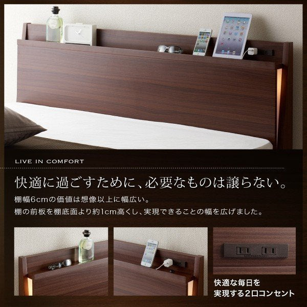 kag-53985 シングルベッド 一人暮らし マットレス付き チェスト ベッド下 収納 引き出し 大容量 宮 棚 携帯 照明 読書 ライト コンセント スマホ 充電 ヴィンテージ