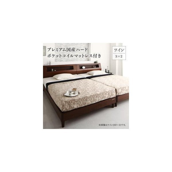 プレミアム国産ハードポケットコイルマットレス付き 2台セット(S×2)