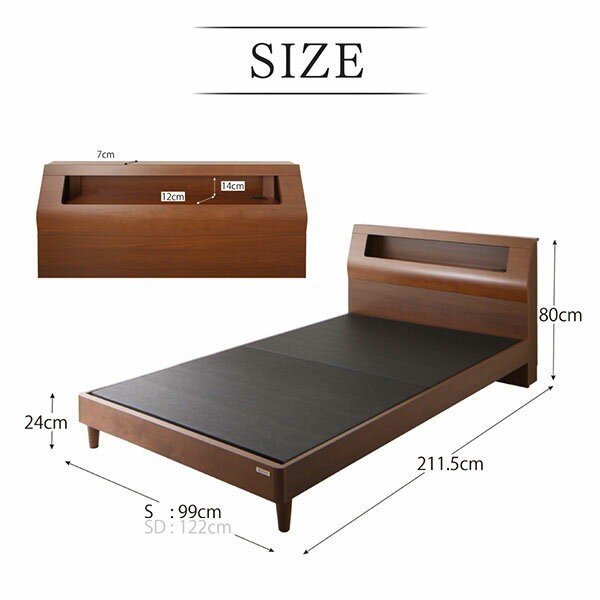 セミダブル:幅122x奥行き211.5x高さ80cm