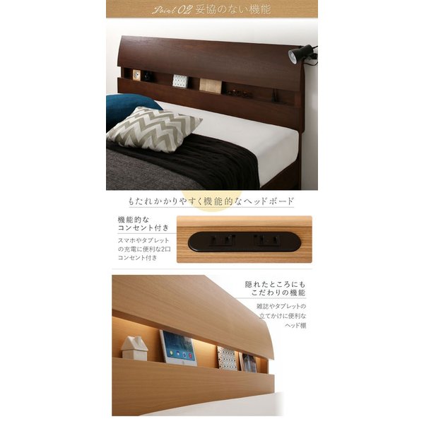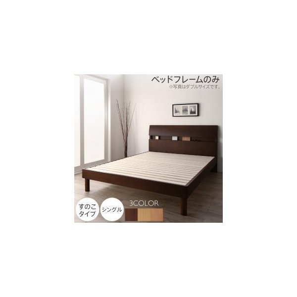 kag-54053 シングルベッド 一人暮らし フレームのみ 脚 足 宮 枕元 棚 ラック 携帯 メガネ リモコン 頭上 収納 コンセント スマホ 充電 電気 すのこ ヴィンテージ モダン