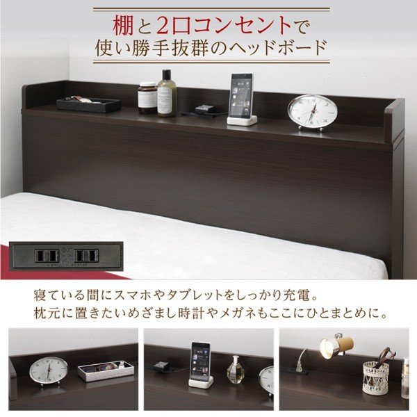 kag-54309 シングルベッド 一人暮らし マットレス付き 跳ね上げ式 ガス圧 ベッド下 収納付き 大容量 宮 棚 携帯 収納 コンセント スマホ 充電 布団可 すのこ 通気性 カビ
