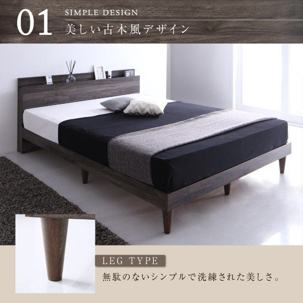 kag-54470 シングルベッド 一人暮らし マットレス付き ローベッド 低い 宮 棚 携帯 リモコン 収納 コンセント スマホ 充電 布団可 すのこ 通気性 カビ 脚 足 ヴィンテージ