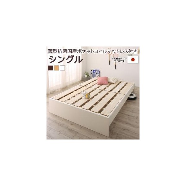 要組立 薄型抗菌国産ポケットコイルマットレス付き シングル