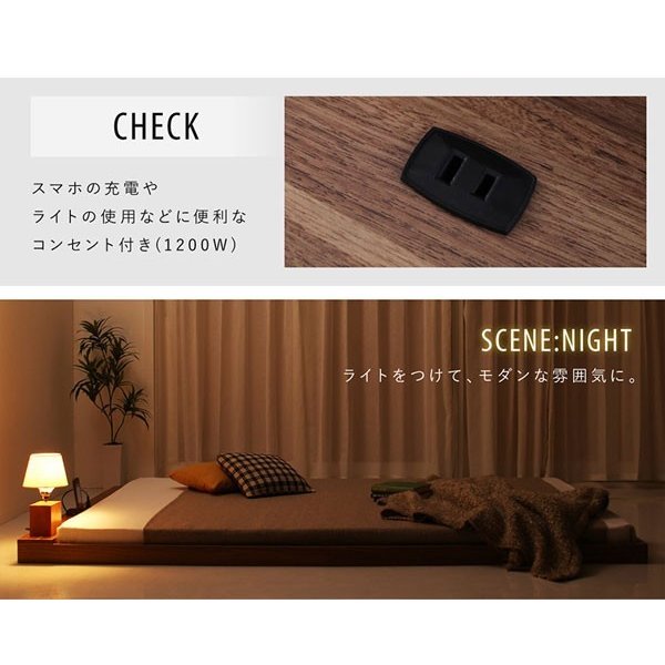 kag-54640 シングルベッド 一人暮らし マットレス付き ローベッド ロータイプ 低い ヘッドレス コンセント ゲーム ケーブル 収納 スマホ 充電 電気 ヴィンテージ モダン