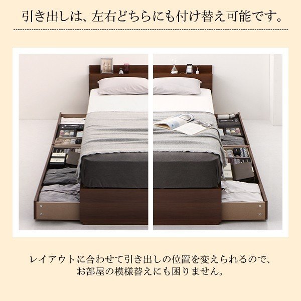 kag-54795 シングルベッド 一人 フレーム チェスト 収納 引き出し 大容量 宮 棚 携帯 コンセント スマホ 充電 布団可 すのこ 通気性 カビ 北欧 おしゃれ アンティーク