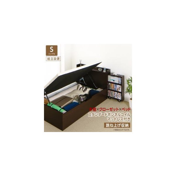 組立付 標準ボンネルコイルマットレス付き 跳ね上げ収納 シングル 深さラージ