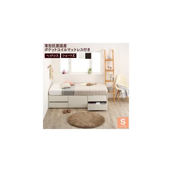 要組立 薄型抗菌国産ポケットコイルマットレス付き 宮無 シングル ショート丈