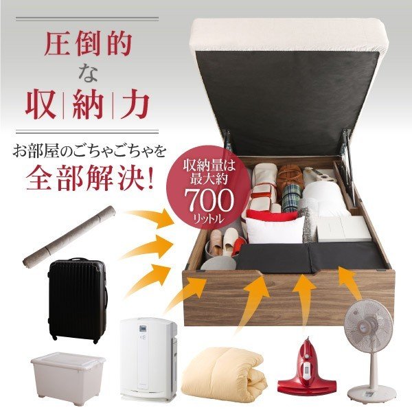 kag-54979 セミシングルベッド 一人暮らし コンパクト 小さい マットレス付き 跳ね上げ式 ガス圧 ベッド下 収納付き 大容量 ヘッドレス すのこ 通気性 カビ ヴィンテージ