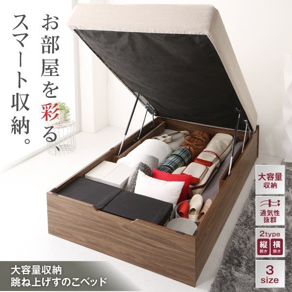 kag-54983 シングルベッド 一人暮らし マットレス付き 跳ね上げ式ベッド ガス圧 ベッド下 収納付き 大容量 ヘッドレス すのこ 通気性 除湿 カビ ヴィンテージ モダン