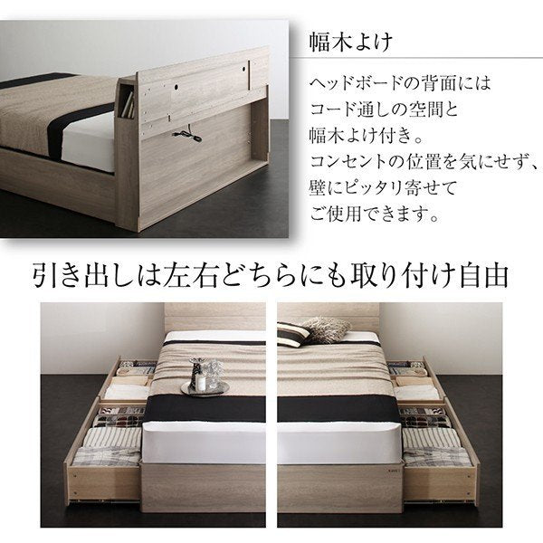 kag-54988 シングルベッド 一人暮らし フレーム チェスト ベッド下 収納 引き出し 大容量 宮 棚 携帯 照明 ライト コンセント スマホ 充電 北欧 おしゃれ アンティーク