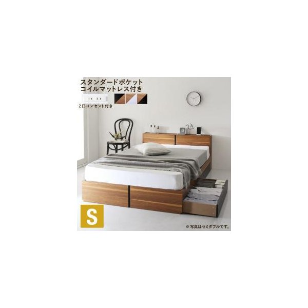 シングルベッド 一人暮らし マットレス付き チェストベッド ミドル ベッド下収納 引き出し付き 大容量 宮付き ヘッドボード 枕元 棚 ラック 携帯置き ティッシュ置き メガネ置き リモコン 頭上 収納 コンセント ゲーム ケーブル スマホ 充電 電気 デザイナーズ ホテル モダン 高級 メンズ