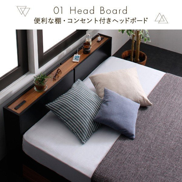 シングルベッド 一人暮らし マットレス付き チェストベッド ミドル ベッド下収納 引き出し付き 大容量 宮付き ヘッドボード 枕元 棚 ラック 携帯置き ティッシュ置き メガネ置き リモコン 頭上 収納 コンセント ゲーム ケーブル スマホ 充電 電気 デザイナーズ ホテル モダン 高級 メンズ