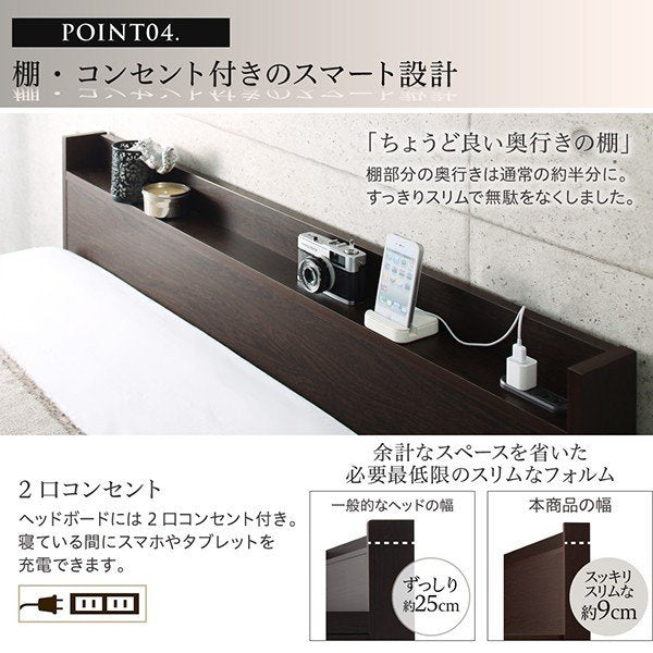 組立付 薄型抗菌国産ポケットコイルマットレス付き シングル