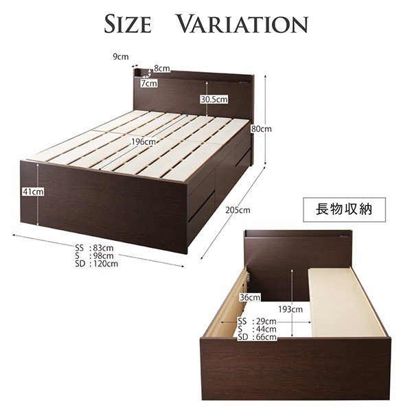 kag-55190 シングルベッド 一人暮らし フレーム チェスト ベッド下 収納 引き出し 大容量 宮 棚 携帯 コンセント スマホ 充電 布団可 すのこ 通気性 カビ ヴィンテージ