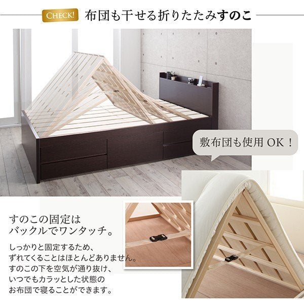 kag-55196 シングルベッド 一人暮らし マットレス付き チェスト ベッド下 収納 引き出し 大容量 宮 棚 携帯 コンセント スマホ 充電 布団可 すのこ 通気性 カビ