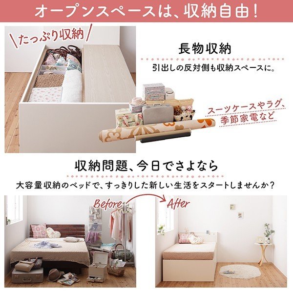 kag-55261 セミシングルベッド 一人 コンパクト 小さい マットレス付 チェスト 収納 引き出し 棚 携帯 コンセント スマホ 充電 布団可 すのこ 通気性 カビ 北欧 おしゃれ