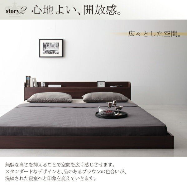 kag-7843 ベッド シングル ローベッド 低い 棚 宮付き スマホ メガネ リモコン コンセント 充電 フレーム 北欧 おしゃれ ヴィンテージ 国産カバーポケットCマットレス付