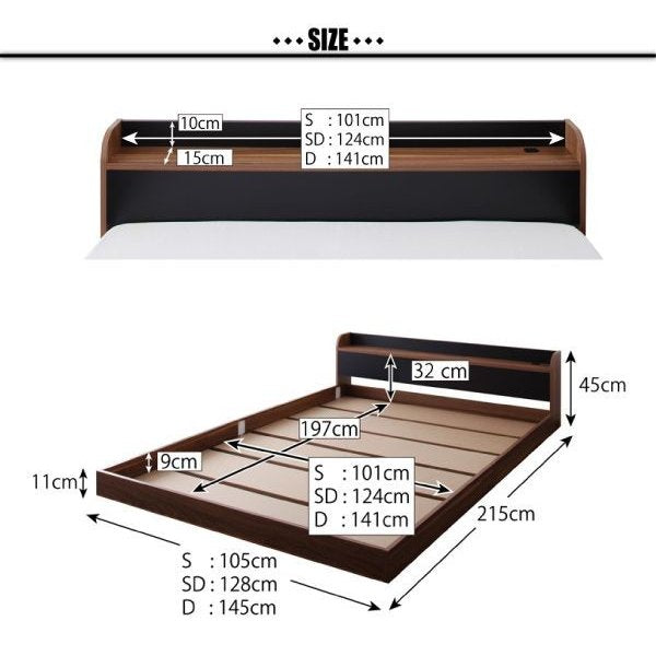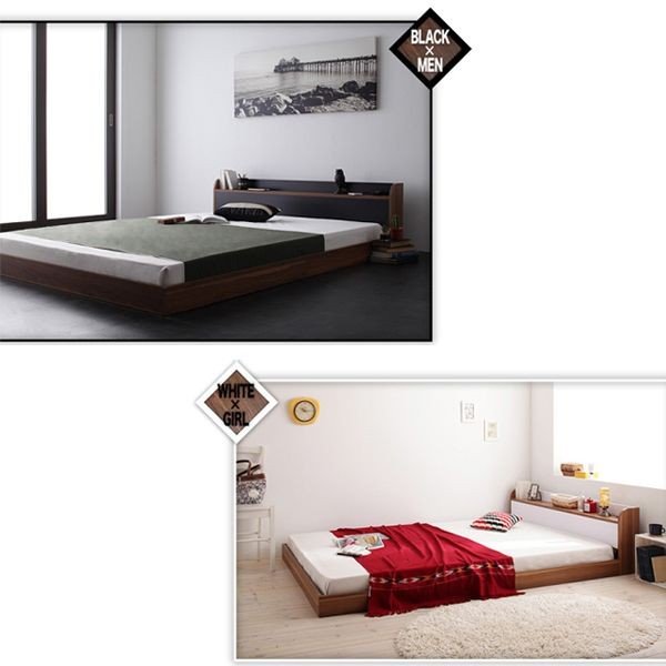 kag-7939 ベッド シングル ローベッド 低い 棚 宮付き スマホ リモコン コンセント 充電 フレーム 北欧 おしゃれ ヴィンテージ ツートンカラー マルチラスSSマットレス付