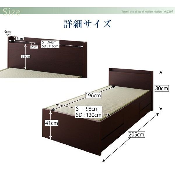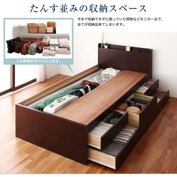 kag-8376 シングル ベッド チェスト 下収納 引き出し 大容量 宮 棚 スマホ メガネ リモコン ラック コンセント 充電 畳 おしゃれ モダン アジアン 組立付 中国畳 柵無