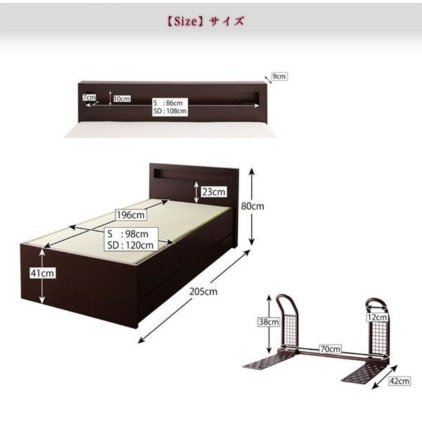 kag-8412 シングル ベッド チェスト 下収納 引き出し 大容量 宮 棚 スマホ リモコン ラック コンセント 充電 畳 おしゃれ アジアン 組立付 中国畳 ベッドガード付き