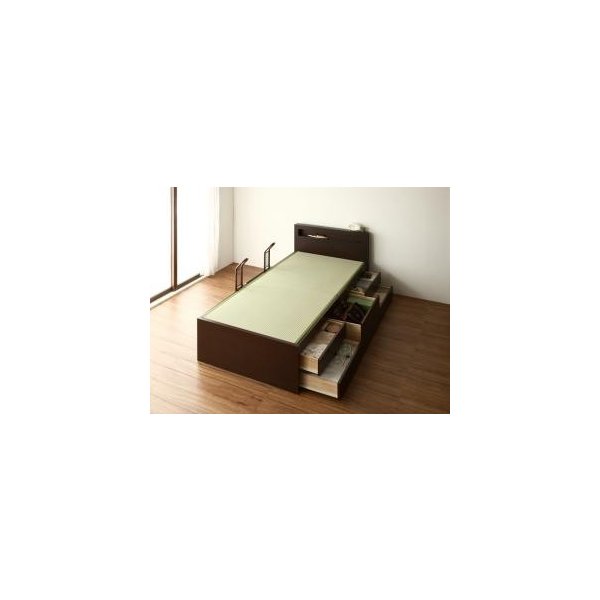 kag-8420 シングル ベッド チェスト 下収納 引き出し 大容量 宮 棚 スマホ リモコン ラック コンセント 充電 畳 おしゃれ アジアン 組立付 国産畳 ベッドガード付き