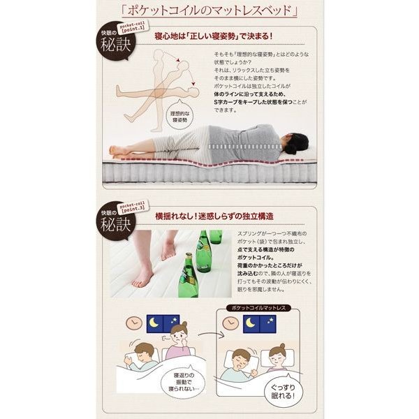 木脚、天然木、1.8mmポケットコイルスプリング(コイル数/シングル:448、セミダブル:560)、ウレタンフォーム、防音フォーム、フェルト、不織布、ポリエステル100張り地