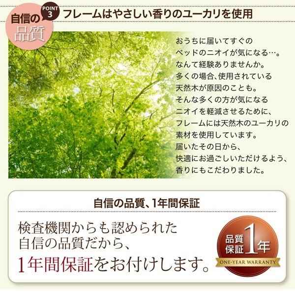 木脚、天然木(ユーカリ)、2.0mmポケットコイルスプリング(コイル数/SS:348、S:435、SD:551)、