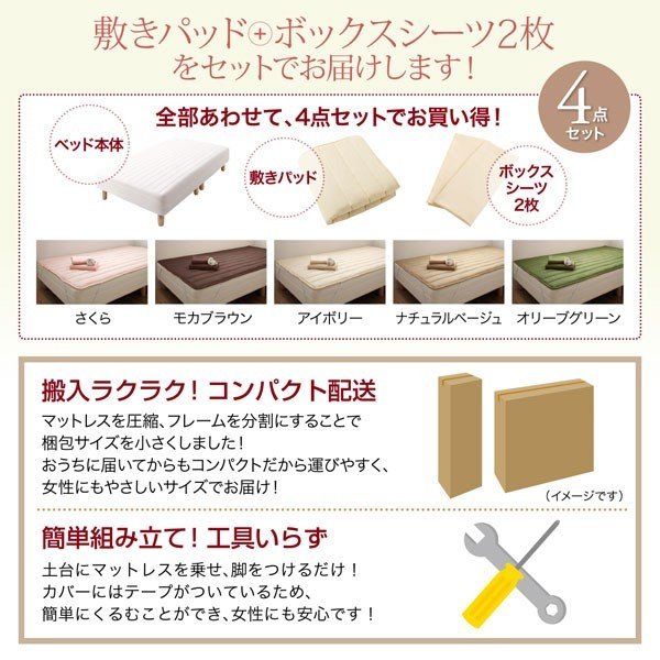 kag-9701 ベッド セミシングル 脚付き マットレスベッド ベンチ ローベッド ヘッドレス ショート丈 姫系 かわいい 子供 短い ワンルーム 省スペース ボンネルC 脚30