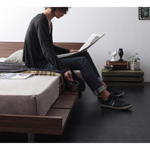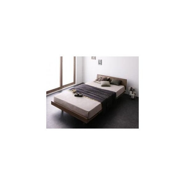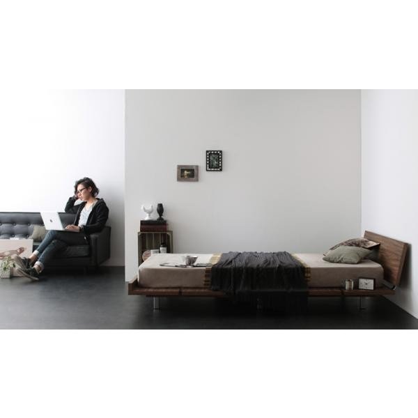 kag-10381 ベッド セミダブル ローベッド 低い フレーム フラット ヘッドボード 薄型 板 北欧 おしゃれ ヴィンテージ 脚付き ルンバ SボンネルCマットレス付 フル 枠幅120
