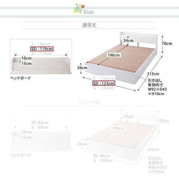 kag-10400 セミダブル ベッド チェスト 下収納 引き出し 大容量 棚 宮 スマホ コンセント 充電 フレーム アンティーク 姫系 かわいい SポケットCマットレス付 リネン無