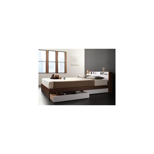 kag-10453 セミダブル ベッド チェスト 下収納 引き出し 大容量 棚 宮 スマホ リモコン コンセント 充電 収納 フレーム おしゃれ ヴィンテージ SボンネルCマットレス付