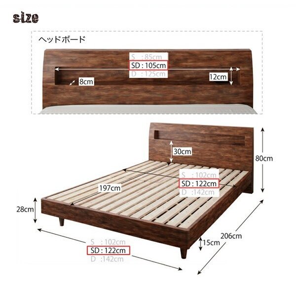 セミダブル:(約)幅122x長さ206x高さ80cm