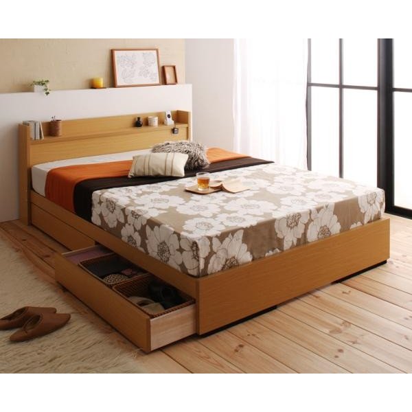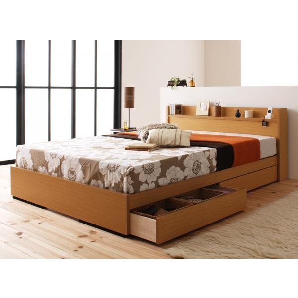 kag-10964 セミダブル ベッド チェスト 下収納 引き出し 大容量 宮 棚 スマホ メガネ リモコン ラック コンセント 充電 収納 フレーム おしゃれ ボンネルCマットレス付