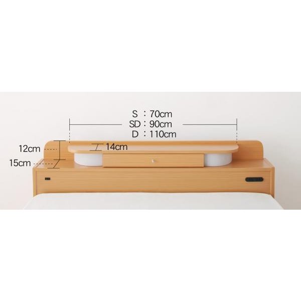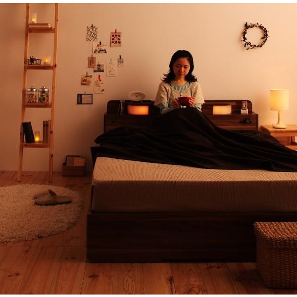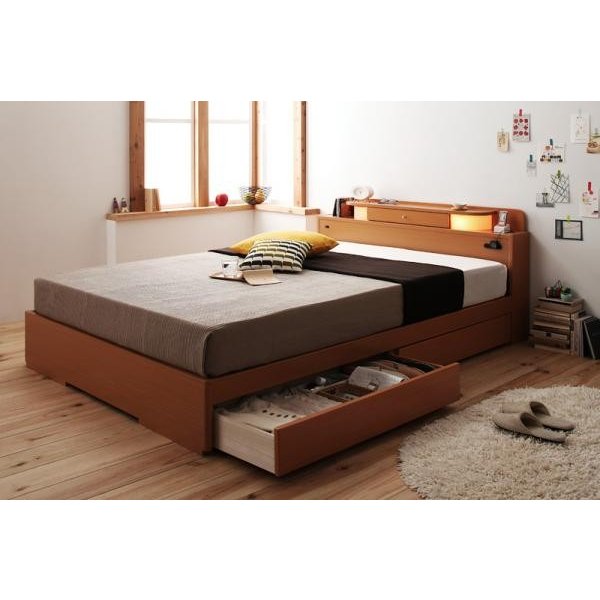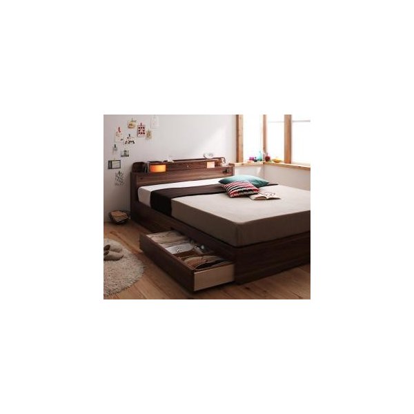 kag-11198 セミダブル ベッド チェスト 下収納 引き出し 大容量 宮 棚 スマホ ラック ライト コンセント 充電 収納 フレーム 照明 (マルチラスSSマットレス付)