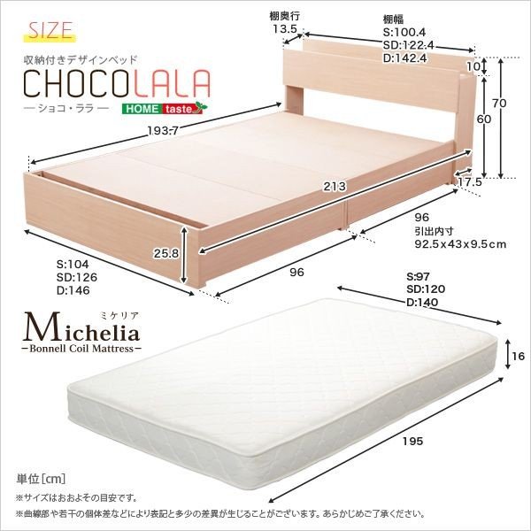 kag-26674 セミダブル ベッド チェスト 下収納 引き出し 大容量 収納 木製 おしゃれ 高級 棚 スマホ ラック 宮 コンセント 充電 ボンネルコイル マットレス付 通気性