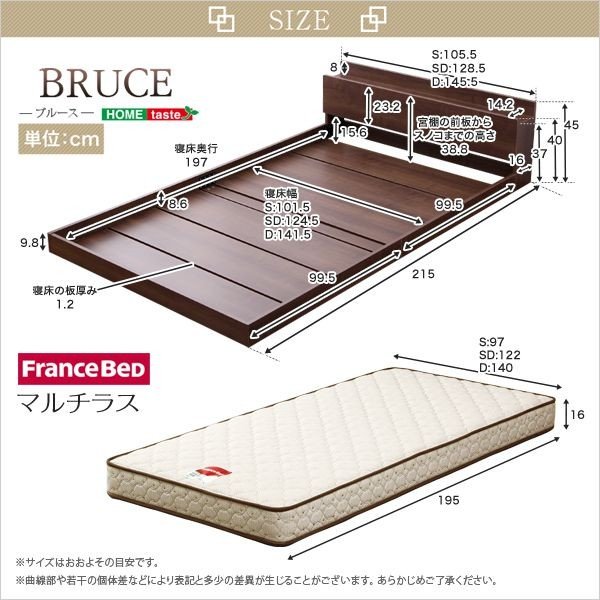 kag-26723 ベッド セミダブル ローベッド 低い 木製 北欧 高級 宮 棚 スマホ メガネ リモコン ラック コンセント 充電 おしゃれ モダン すのこ マルチラスSS マットレス付
