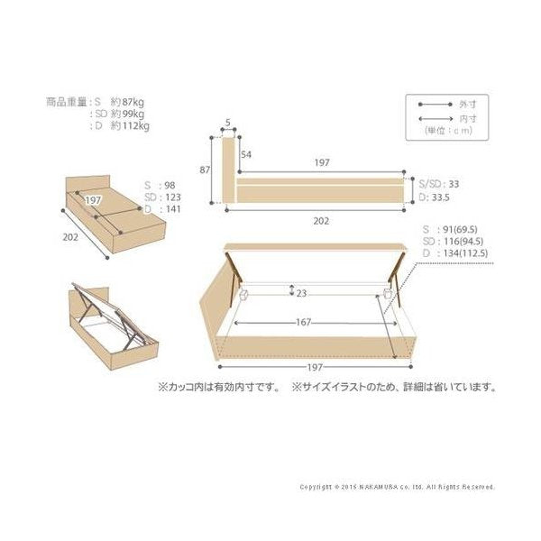 kag-35933 ベッド セミダブル フレーム おしゃれ 安い 北欧 一人暮らし SD 跳ね上げ式 ガス圧 ベッド下収納 収納付き 大容量 チェスト 収納 横開 日本製 国産 フレーム