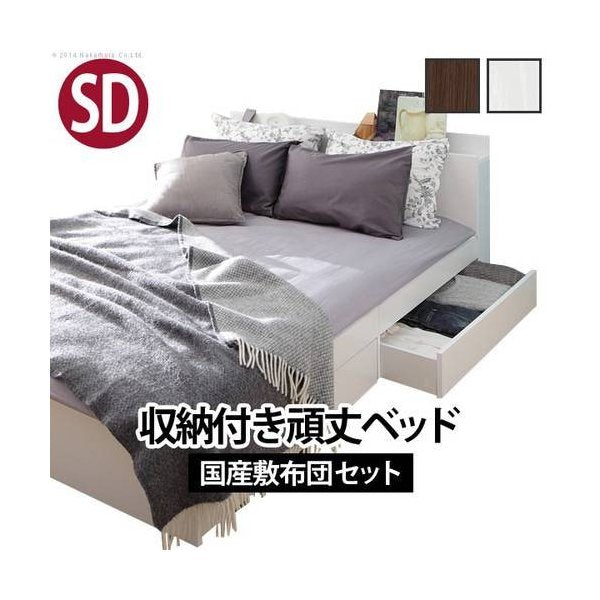 kag-36157 ベッド セミダブル フレーム おしゃれ 北欧 一人暮らし SD チェスト ベッド下収納 引き出し 布団 セット +3層敷布団付き 宮付き 布団付き 敷布団 日本製 防ダニ