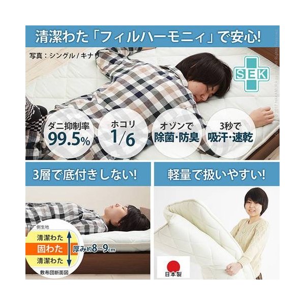 中綿:ポリエステル綿+中空綿約2.4kg/固綿約2.4kg