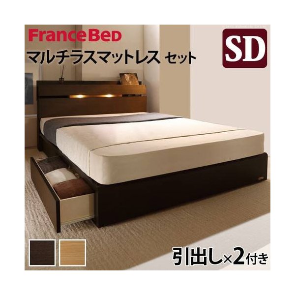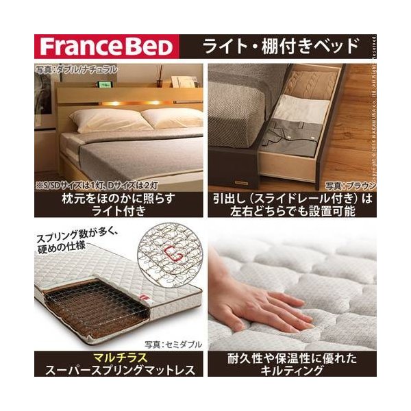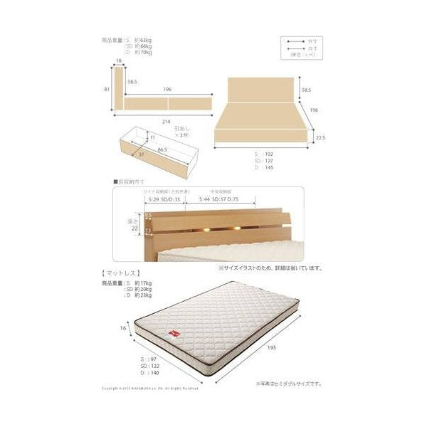 kag-36253 ベッド セミダブル フレーム 一人暮らし SD チェスト 収納 引き出し ライト 宮付き マルチラスSS マットレス付き 日本製 コンセントマットレス付き コンセント