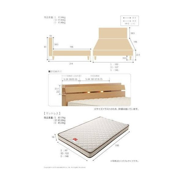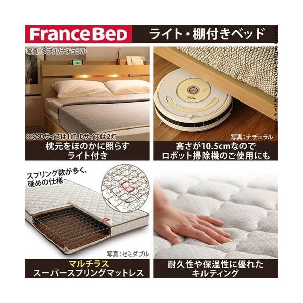 kag-36256 ベッド セミダブル フレーム おしゃれ 安い 北欧 一人暮らし SD マットレス付き ライト 宮付き 枕元 棚 足付 マルチラススーパーS 脚付き 日本製 コンセント