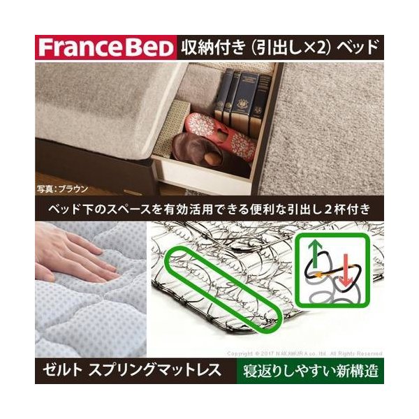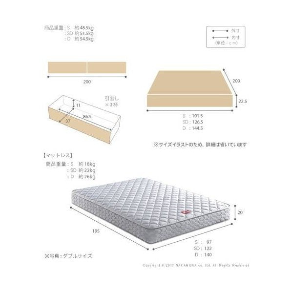 kag-36348 ベッド セミダブル フレーム おしゃれ 安い 北欧 一人暮らし SD チェスト ベッド下収納 引き出し付き 大容量 国産 収納 マットレス付き スプリングマットレス