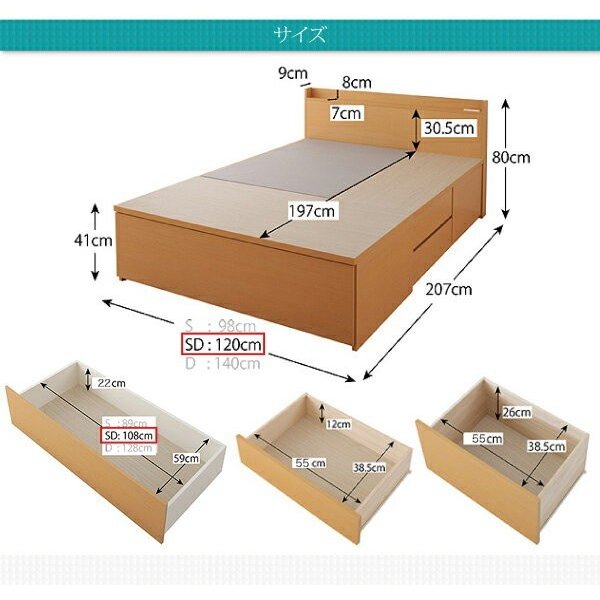 セミダブル:(約)幅108×奥行59×深さ22cm