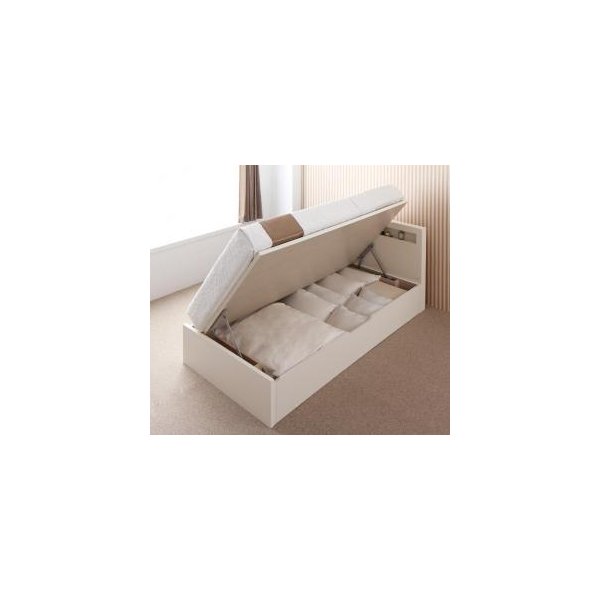 セミダブルベッド 一人暮らし SD マットレス付き 跳ね上げ式ベッド ガス圧 ベッド下 収納付き 大容量 宮付き ヘッドボード 枕元 棚 ラック 携帯置き ティッシュ置き メガネ置き リモコン 頭上 収納 スマホ 充電 電気 コンセント デザイナーズ ホテル モダン 高級 メンズ