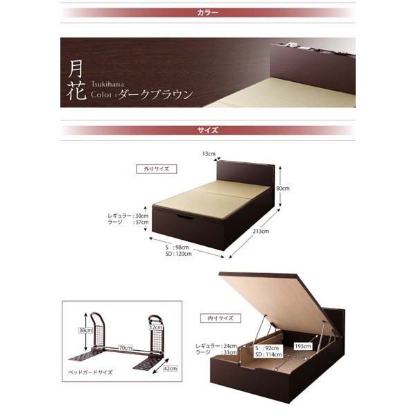 kag-40738 セミダブルベッド 一人 フレーム 跳ね上げ式 ガス圧 ベッド下 収納 畳 硬め 布団可 腰痛 通気性 カビ 湿気 和室 棚 携帯 照明 ライト コンセント スマホ